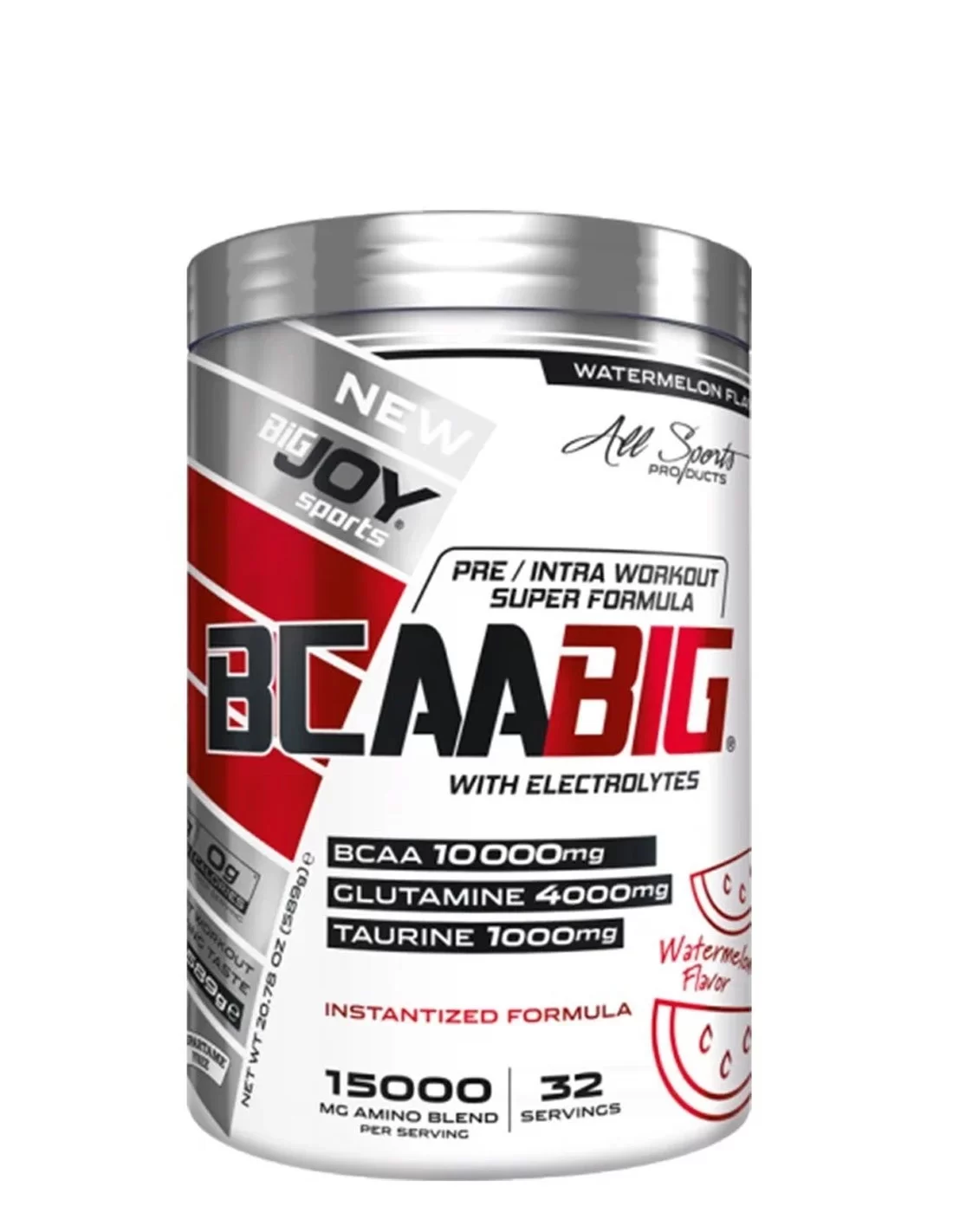 BIGJOY® BCAABIG antrenman sırasında performansınızı artırması, antrenman sonrasında ise yenilenmeyi desteklemesi için özel olarak formüle edilmiştir. Benzersiz bir formüle sahiptir: 1 servisinde 10 gram BCAA, 4000 mg glutamin, 1000 mg taurin ve elektrolitler içermektedir.